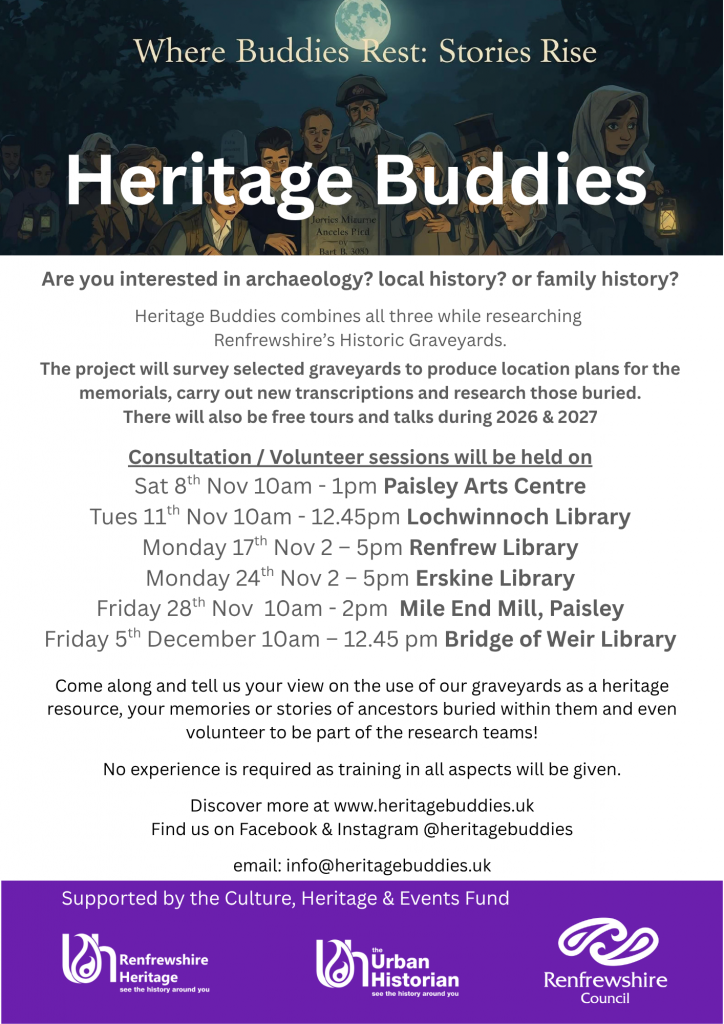 👉 Join us, make new connections, and help bring Renfrewshire’s heritage to life for future generations.